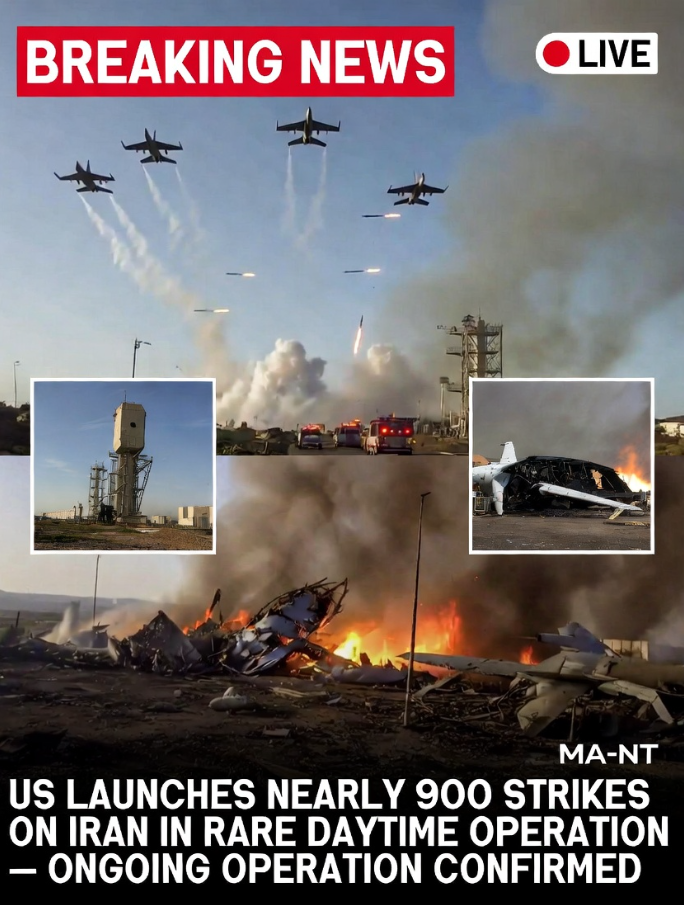 Washington / Tehran — The United States has carried out an extraordinary wave of nearly 900 coordinated air and missile strikes against targets across Iran in what officials describe as a rare broad-daylight operation. The масштабed assault marked a sharp departure from the long-standing pattern of conducting major strike campaigns under cover of darkness.