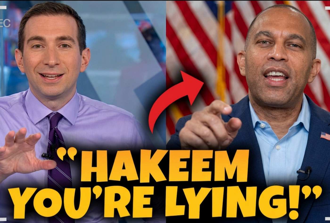 hakeem Jeffries pointing at CNBC interviewer during tense exchange with bold text